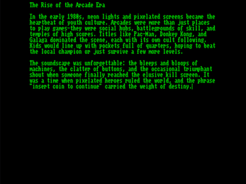 Retro atmosphere: authentic fonts, classic monochrome green visuals.